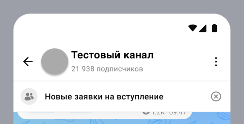 Если у вас появились заявки, вы увидите уведомление «Новые заявки на вступление» прямо в канале. Нажмите на него — вы перейдёте к заявкам